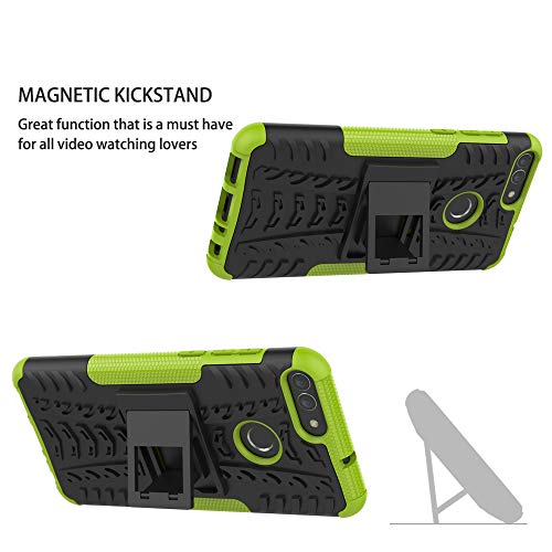 LiuShan Huawei P Smart Custodia, Protettiva Shockproof Rigida Dual Layer Resistente agli Urti con cavalletto Caso per Huawei P Smart 2018 (Not Fit Huawei P Smart 2019) Smartphone,Verde