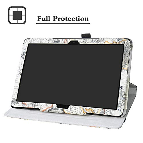 LiuShan MediaPad M5 Lite Rotante Custodia, 360 Gradi di Rotazione Custodia in Pelle PU con Supporto Caso per 10.0" Huawei MediaPad M5 Lite 10 Android Tablet,Map White