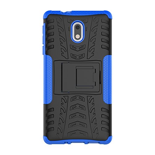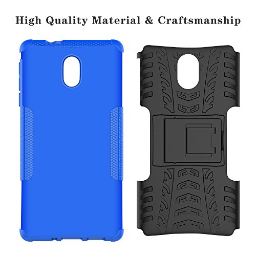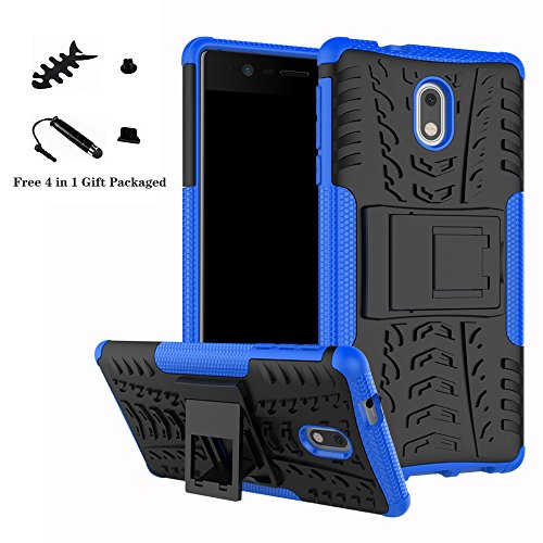 LiuShan Nokia 3 Custodia, Protettiva Shockproof Rigida Dual Layer Resistente agli Urti con cavalletto Caso per Nokia 3 Smartphone(con 4in1 Regalo impacchettato),Blu