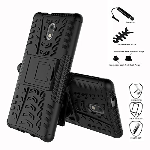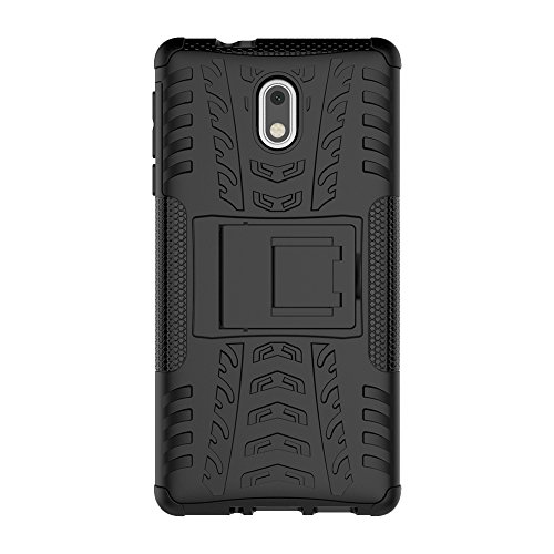 LiuShan Nokia 3 Custodia, Protettiva Shockproof Rigida Dual Layer Resistente agli Urti con cavalletto Caso per Nokia 3 Smartphone(con 4in1 Regalo impacchettato),Nero