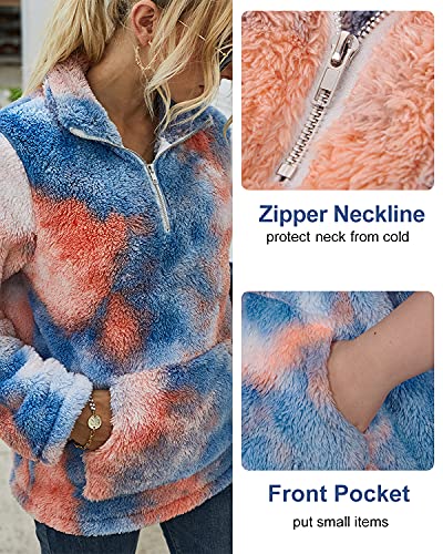 LIVACASA Felpe Donna Pullover Morbido Pile Tops Termico a Manica Lunga Maglione Donna Caldo con Tasca Ragazza Invernale Blu S