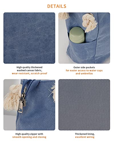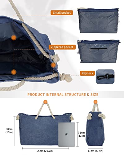 LIVACASA Grande Donna Borsa da Spiaggia, Borsa da Mare in Tela Borsa Tracolla con Cerniera,Blu Estivo Borsa Tote Per Viaggi e Shopping