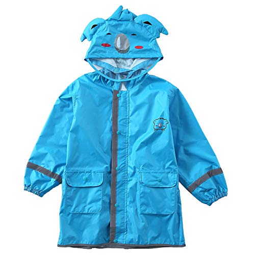 LIVACASA Impermeabile Bambina Poncho Pioggia Bambino Mantella Antipioggia Bimbo con Striscia Riflettente Leggero per I Bambini 2-10 Anni Blu(Koala) Marca M 4-6 Anni/Statura: 110-125cm