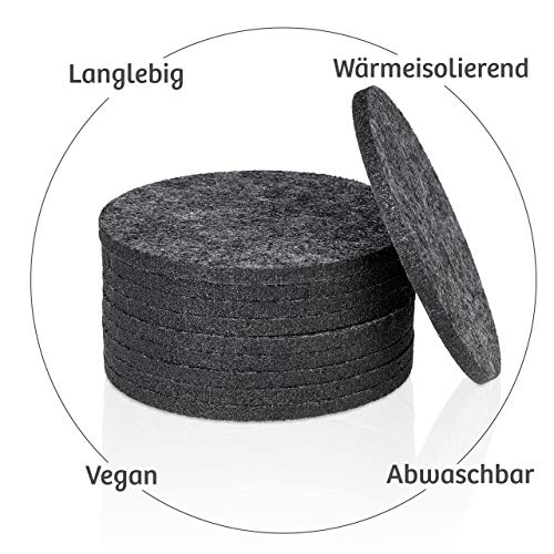 Protezione decorativa con il set di feltro: questi bellissimi sottobicchieri in feltro proteggono il tavolo in modo decorativo. Il set contiene 10 tovagliette lavabili con un diametro di 10 cm. Elegante tovaglietta in feltro in poliestere