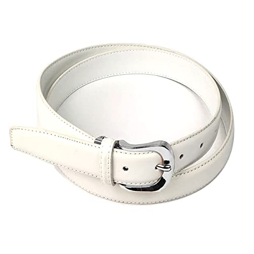 LIVAN - Cintura da uomo classica - crosta pelle bovina - altezza 3CM - regolabile fibbia argentato/oro con archetto - lunghezza totale 120 cm - taglia unica, bianco, Taglia Unica