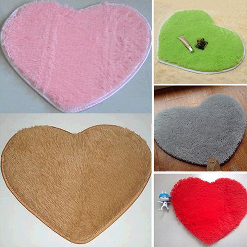Livecity breve peluche tappeto bambini a forma di cuore cuscino morbido Shaggy Tappeto antiscivolo zerbino, Red, 40cm by 50cm
