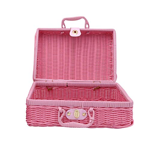 Livecitys Scatole Portaoggetti Vintage Scatola Portaoggetti in Tessuto di Rattan Porta Trucco Valigia Scatola Portaoggetti Vari S Rosa Chiaro