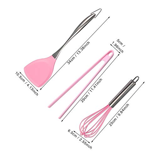 Livedealing - Utensili da cucina in silicone rosa con manico in acciaio inox, stoviglie da cucina, resistenti al calore, accessori da cucina