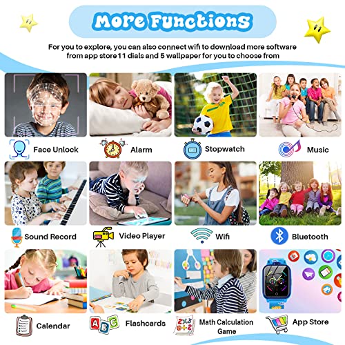 【 Più Funzioni】 Se non vuoi inserire una scheda SIM o connetterti all'app. Questo orologio tracker per bambini può ancora supportare alcune funzioni come fotocamera magica, bluetooth, cronometro, gioco di matematica, ecc. Tuttavia, ti consigliamo di collegare l'app e di dotarla di una scheda SIM per sbloccare più funzioni come chiamata, videochiamata, messaggio, Non disturb