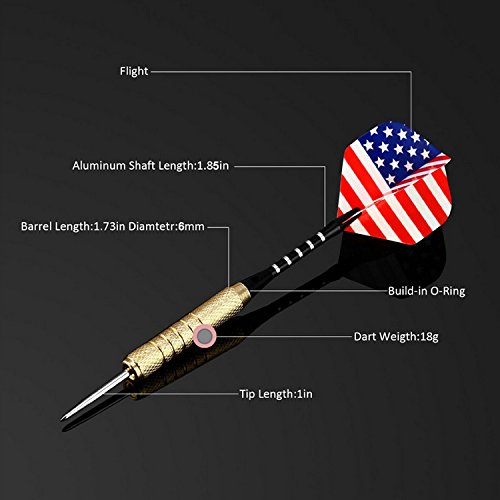 【Costruzione Premium】 - Con botti di ottone durevole di rivestimento in ottone, punte d'acciaio tagliente, alberi in alluminio, voli in PET e anelli antiscivolo, i freccette di punta in acciaio non ti lasceranno scendere in performance.