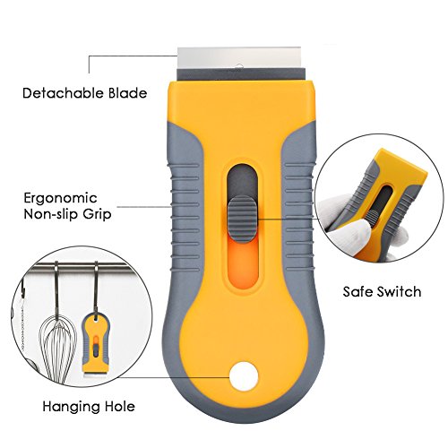 【Resistente】 - Una lama originale più otto pezzi di ricambio possono durare a lungo. Durevole e favorevole Con un foro sporgente, il raschietto può essere appeso a ganci sulla porta o in cucina.