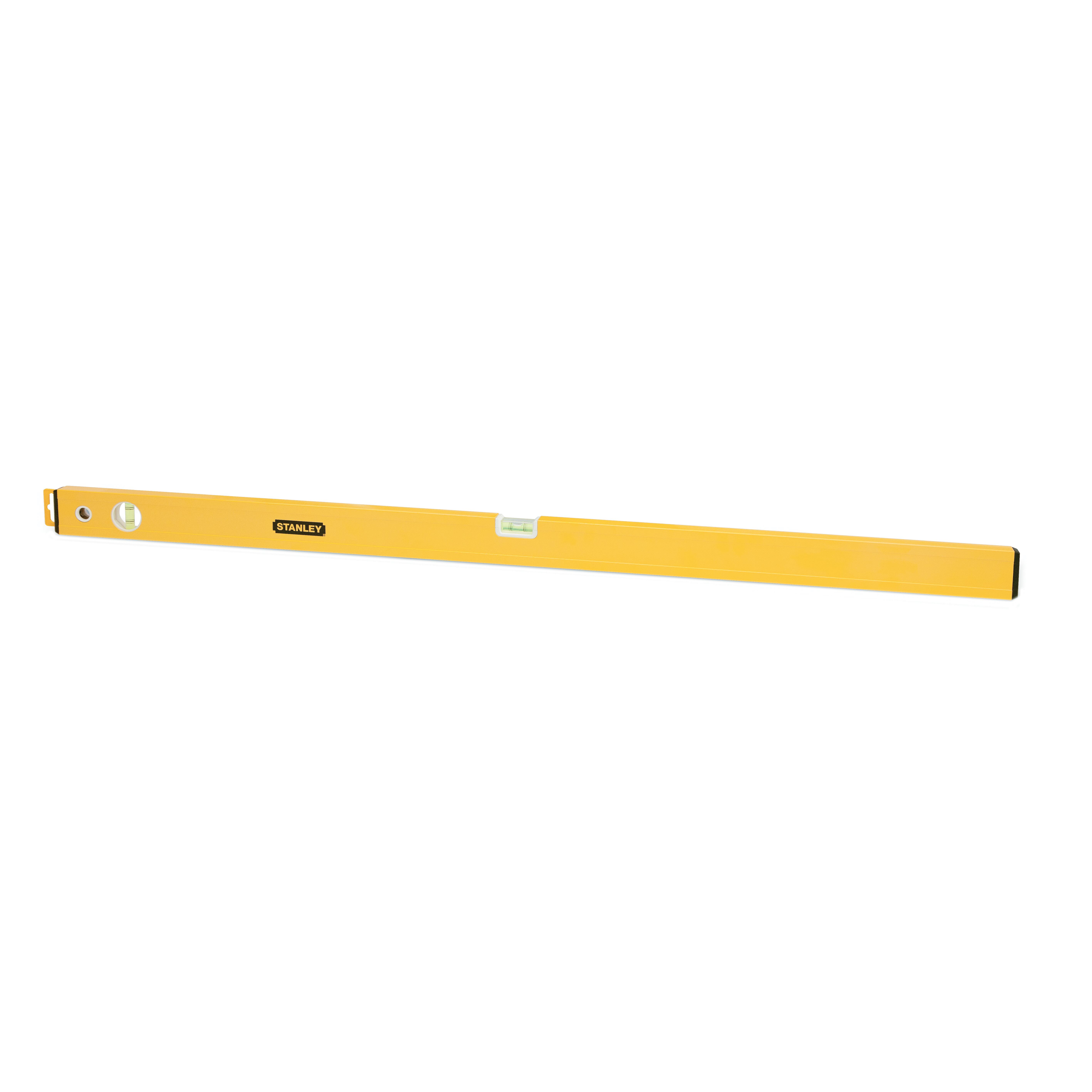 Livella manuale a bolla rettangolare, in alluminio, lunghezza 120 cm, 3 fiale. Nuovo design ergonomico, profilo completamente liscio per evitare l'attaccamento di malta o cemento. Estremità rivestite in gomma. Precisione dei piani di lavoro 0,5 mm/m. Bolle antichoc di garnde visibilità
