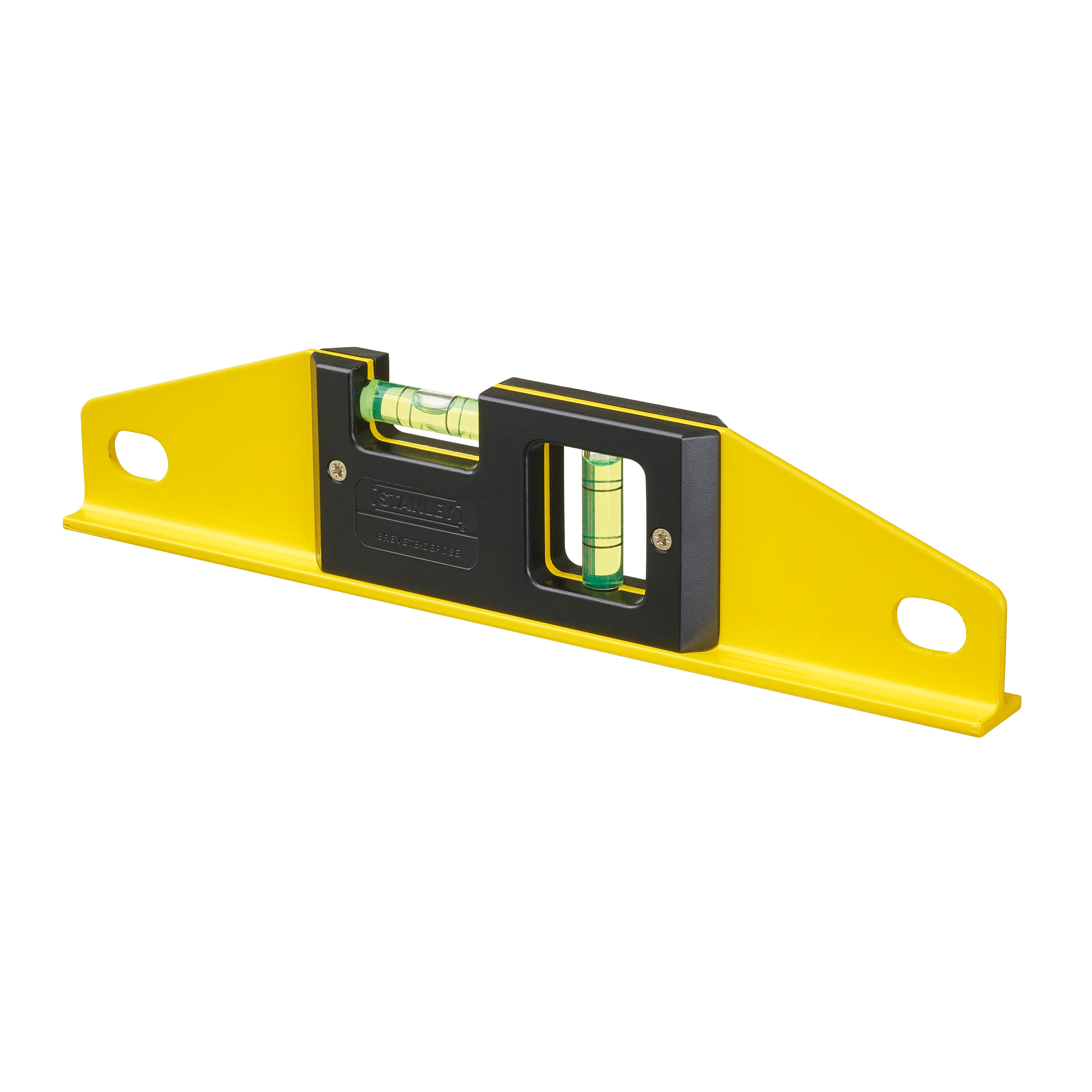 Livella manuale a bolla trapezoidale, in alluminio, lunghezza 25 cm, 2 fiale. Base rettificata. Precisione dei piani di lavoro 1mm/m