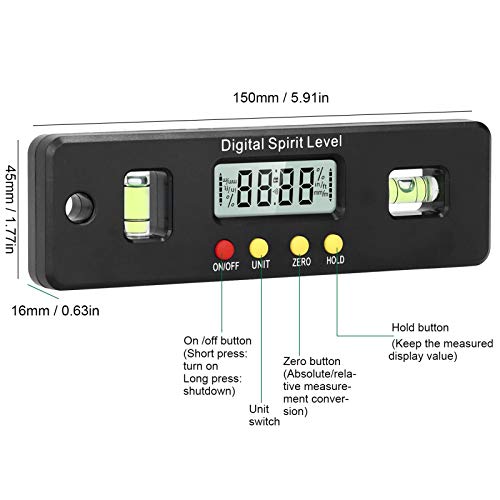 Livella digitale a Bolla, mini inclinometro elettronico da 5.9IN,con il magnetico, Misura accurata,Righello angolare a 360 gradi per misura orizzontale, verticale, strumento da falegname