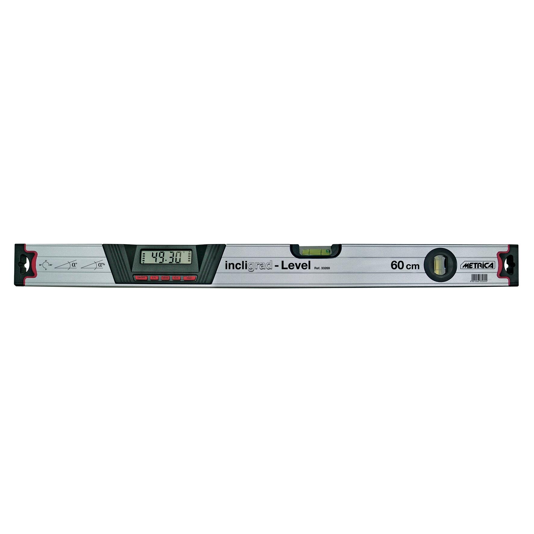 Livella digitale piatta, graduata, in alluminio, lunghezza 60 cm, 2 fiale