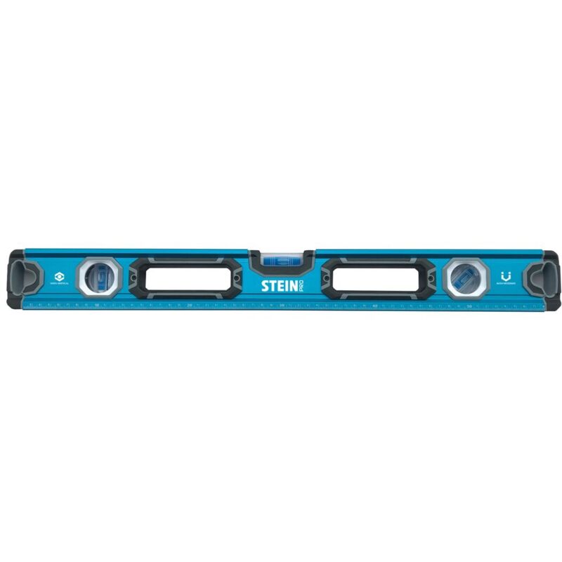 Livella diritta STEIN in alluminio con protezione in gomma. Base magnetica con magneti al neodimio ad alta adesione. Include tre bolle per una calibrazione ottimale (0°, 45° e 90°). Livella con base extra larga per una maggiore stabilità. Misurazione, marcatura e livellamento in edilizia e fai da te. Design esclusivo con finestra e specchio per misurazione verticale. Livello professionale con righello di misurazione integrato.