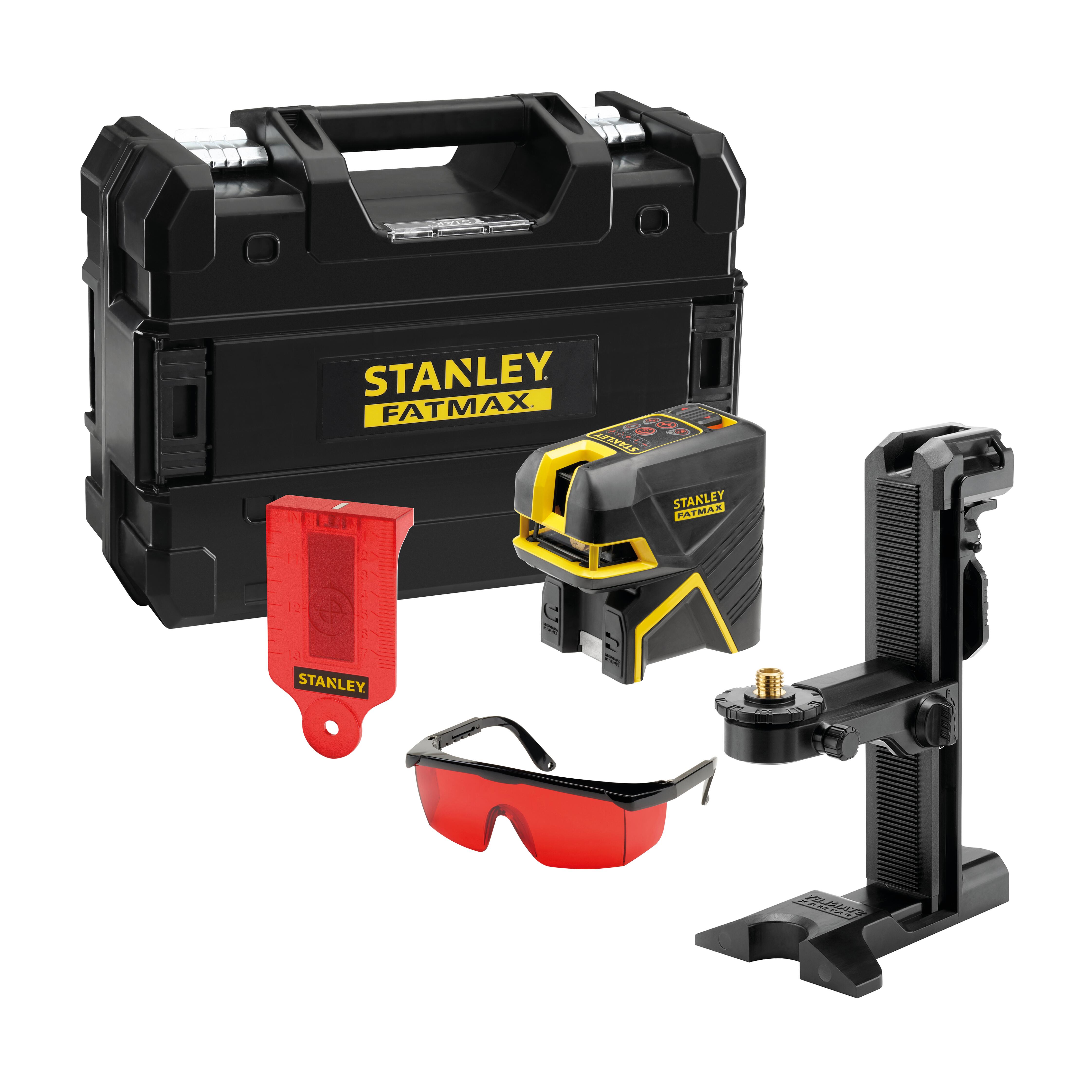 Livella laser a croce + 5 punti FATMAX raggio rosso. Trccia una croce molto ampia sia orizzontale che verticale e 5 punti indipendenti. I due raggi a croce hanno un'ampiezza fino a 150°. Due punti a piombo di grande visibilità. 3 punti consentono messa a livello e squadri.. La confezione include: supporto magnetico regolabile FATMAX, target, occhiali, batterie alcaline, manuale di sicurezza e valigetta PRO-STACK. Portata 20 m / 50m con ricevitore. Precisione 3mm a 10 m. Luce pulsante che consente l'uso con ricevitore. Cassa robusta completamente rivestita in gomma. Protezione a pioggia e polvere IP54. Funzione blocco del pendolo per prevenire danni ai componenti interni. Autonomia oltre 25 ore.. Facile e veloce attivazione dello strumento. Base magnetica integrata che consente il fissaggio diretto su supporti metallici per consentire la proiezione del raggio che comprende l'intera stanza su tre pareti