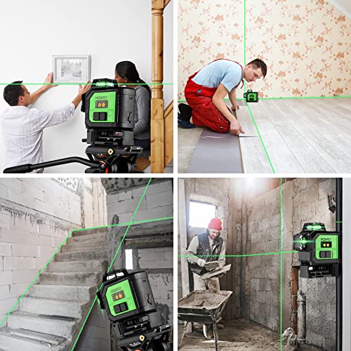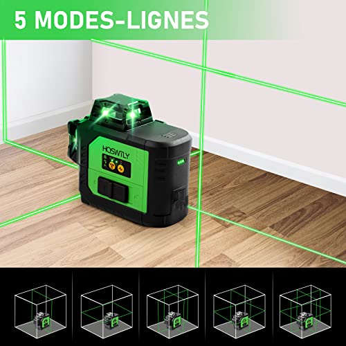 Livella Laser verde 45 m, HOSWTLY 3 x 360° con batteria al litio da 7800 mAh, precisione ±3 mm/10 m Laser Autolivellante, protezione IP54 da polvere e acqua, ricaricabile tramite USB, 000141