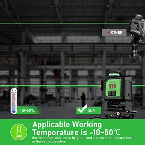 LIVELLO LASER VERDE PROFESSIONALE 3×360° - Un livello orizzontale a 360° e due livelli verticali a 360° consentono di coprire l'intera casa. Il nuovo laser a colori verde nasce dall'ultima ricerca tedesca. Il livello laser HOSWTLY ha PD che può mantenere stabilmente il laser luminoso. Anche con variazioni di temperatura, la temperatura di lavoro è compresa tra -10 ° C e 50 ° C. A parità di potenza, il laser verde è due volte più luminoso del laser rosso.
