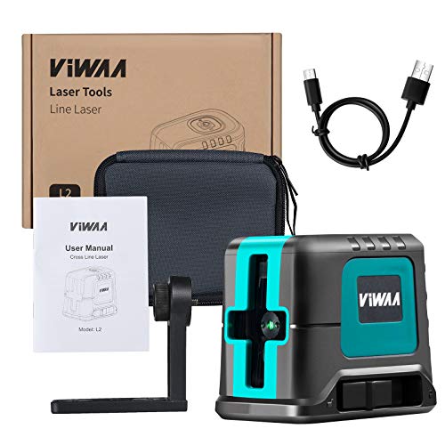 Livella laser Verde 45M, ViWAA USB Ricarica, Livella Laser Autolivellante a Croce, IP54 per Esterno, 2 Modulo Linea Verticale/Orizzontale Laser, Borsa per Trasporto, Supporto Magnetico