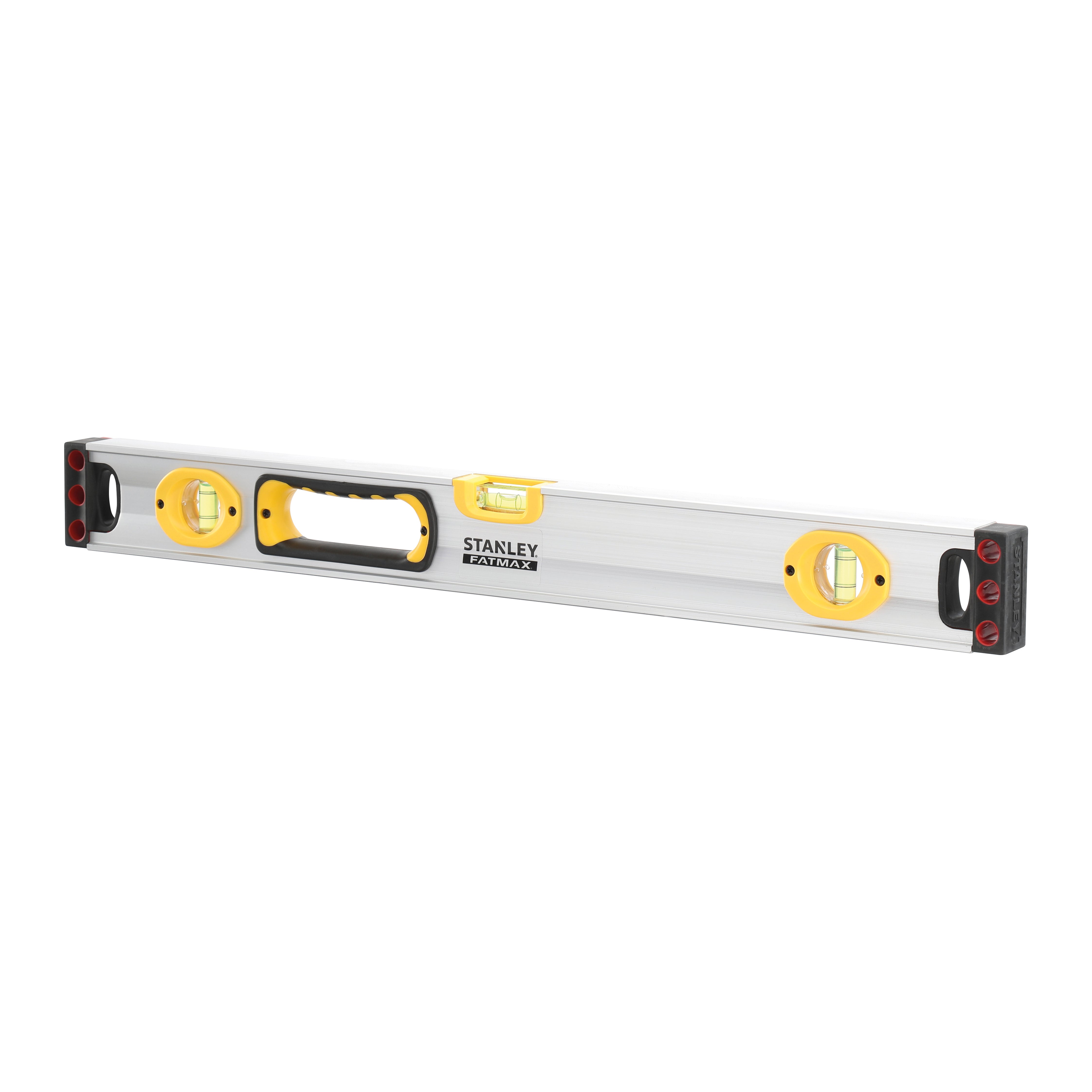 Livella manuale a bolla rettangolare, in alluminio, lunghezza 60 cm, 3 fiale. Struttura unica in alluminio. La bolla centrale è visibile anche dall'alto. Estremità resistenti agli urti, bolle antichoc