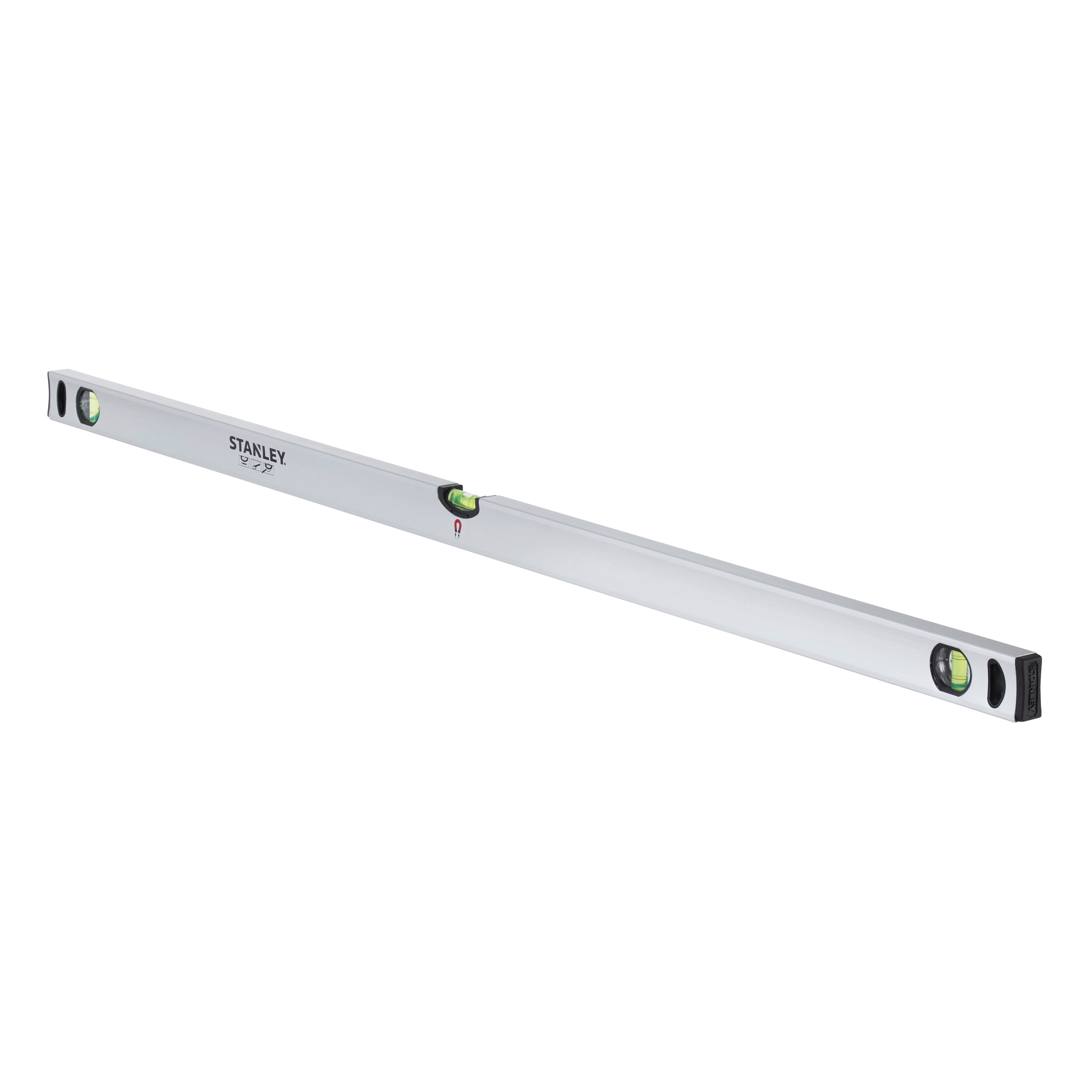 Livella manuale a bolla rettangolare magnetica, in alluminio, lunghezza 120 cm, 3 fiale. Nuovo design più ergonomico, profilo completamente liscio, estremità rivestite in gomma. Bolle antichoc ad alta visibilità. Precisione dei piani di lavoro 0,5 mm/m