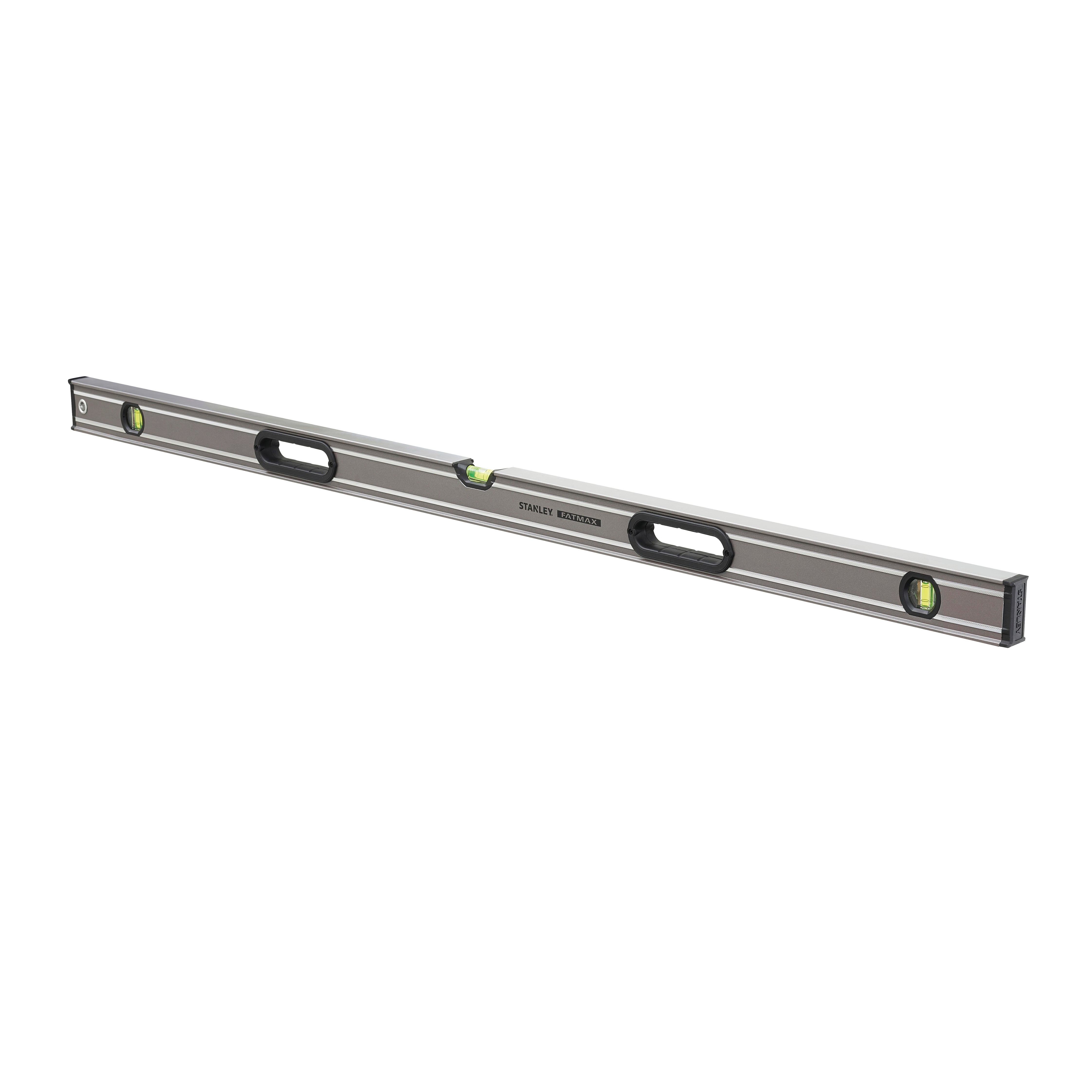 Livella manuale a bolla rettangolare, in alluminio, lunghezza 120 cm, 3 fiale. Corpo in alluminio maggiorato, superfici rettificate, impugnatura bi-material. Grande bolla centrale. Sezione più resistente del 20%. Estremità rivestite in gomma