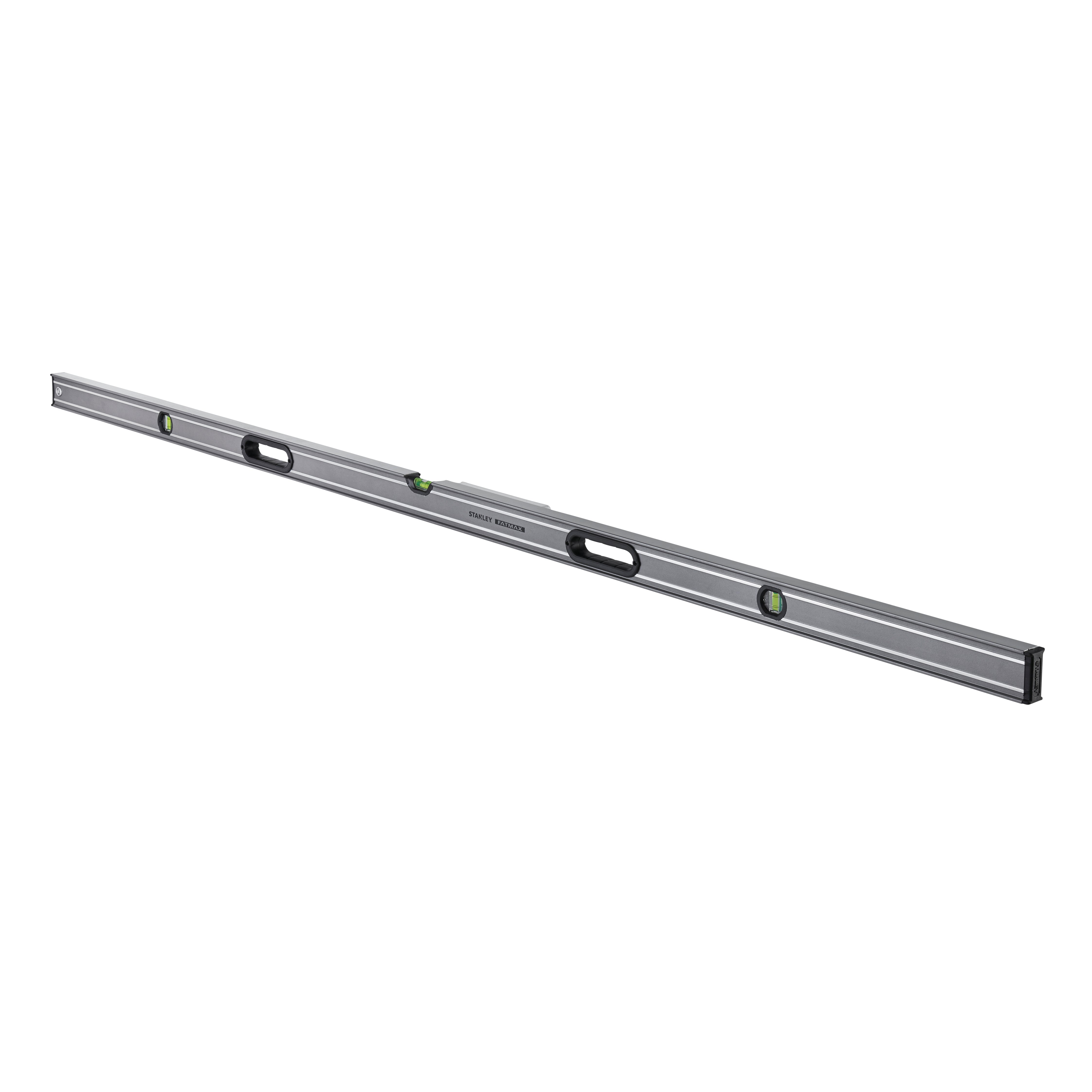 Livella manuale a bolla rettangolare, in alluminio, lunghezza 200 cm, 3 fiale. Corpo in alluminio maggiorato, superfici rettificate, impugnatura bi-material. Grande bolla centrale. Sezione più resistente del 20%. Estremità rivestite in gomma