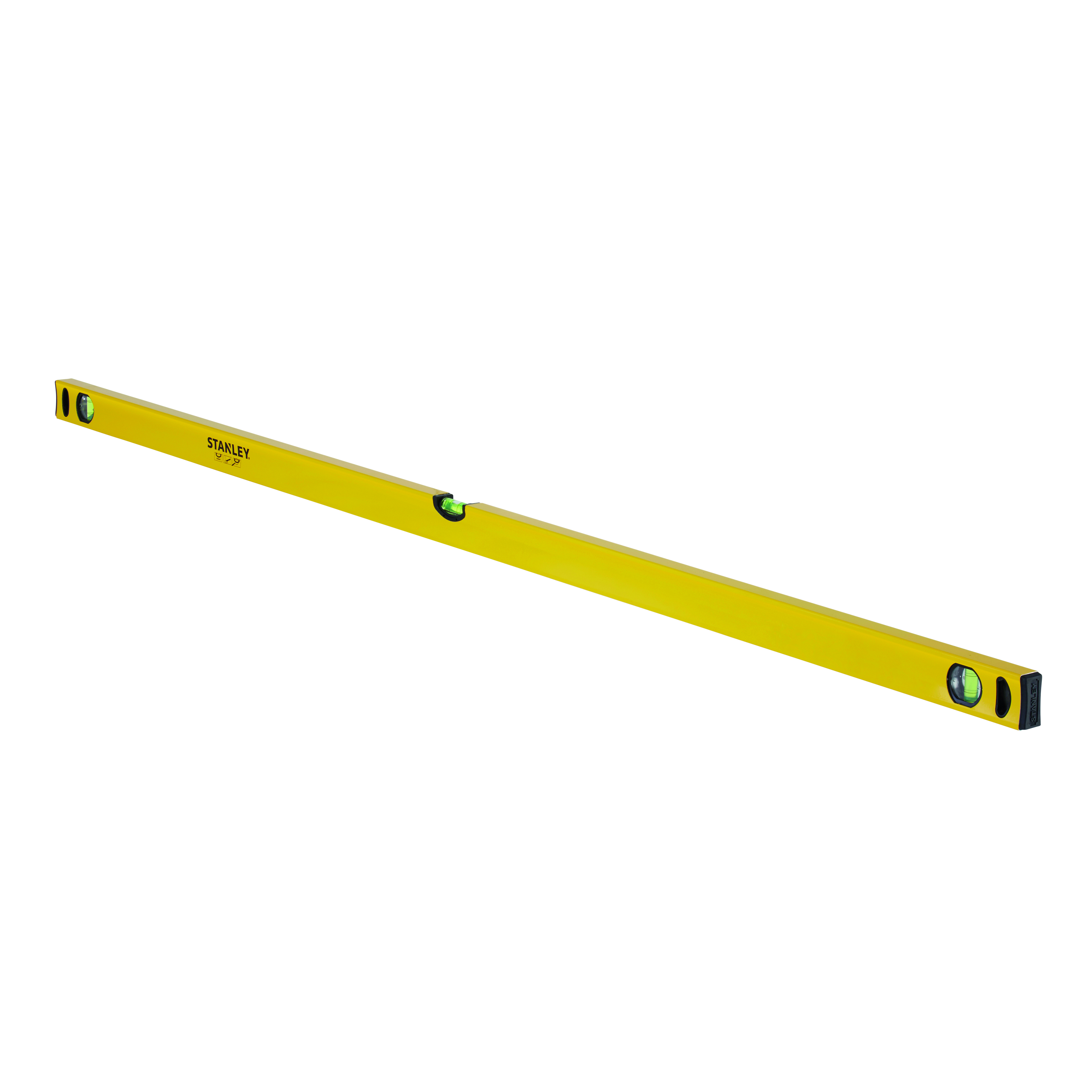 Livella manuale a bolla rettangolare, in alluminio, lunghezza 150 cm, 3 fiale. Nuovo design più ergonomico, profilo completamente liscio, estremità rivestite in gomma. Bolle antichoc ad alta visibilità. Precisione dei piani di lavoro 0,5 mm/m
