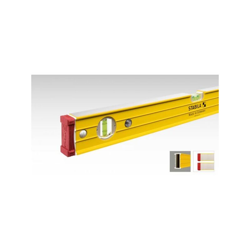 CARATTERSTICHE: - Profilo in alluminio molto rigido con nervature di rinforzo - grande stabilità e presa sicura durante il lavoro. - Due fiale verticali per una lettura veloce in qualsiasi posizione. - Tappi laterali con stopper antiscivolo - perfetta aderenza della livella durante il tracciamento. - Tappi laterali antiurto - il materiale bicomponente protegge il profilo dagli urti. - Tappi laterali rimovibili - posizionamento e tracciamento precisi fino negli angoli. - Facile da pulire grazie alla verniciatura a polvere elettrostatica. - Livella con due superfici di misurazione fresate perfettamente in piano (a partire da 183 cm le superfici sono rivestite). - Misurazioni precise in tutte le posizioni. - Il procedimento di fissaggio della fiala STABILA assicura una precisione duratura - precisione di misurazione in posizione normale ± 0,5 mm/m, in posizione capovolta ± 0,75 mm/m. - Dotazione: 1 fiala orizzontale, 2 fiale verticali, 2 superfici di misurazione.