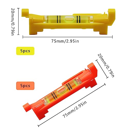 【Set livella a bolla d'aria professionale】 Set di 10 mini bubble spirit level, di cui 5 in giallo e 5 in arancione. Realizzati in materiale ABS di alta qualità, noto per la sua durata e prestazioni precise, sono cristallini dopo lo stampaggio e la loro direzione orizzontale è chiara a colpo d'occhio.