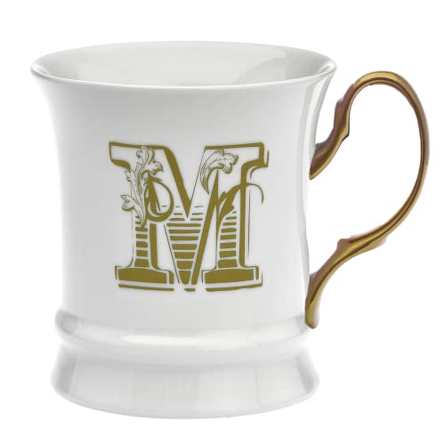 Tazza in porcellana, personalizzata con la lettera M di colore oro. Capacità 350 ml