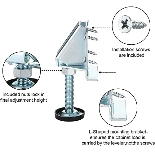 Con piedini in plastica nera per una presa, tenerlo saldamente in posizione e non danneggiare il pavimento, protegge anche dall'umidità. Ogni livellatore ha una capacità portante di 1000 kg