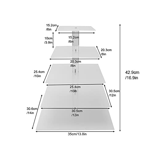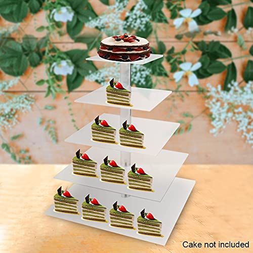 5 livelli di supporto per torta da mriaggio 43 cm, quadrato, espositore per torte, cupcake, dessert trasparente stabile, antiscivolo, espositore per feste, compleanni, matrimoni, Natale (trasparente)