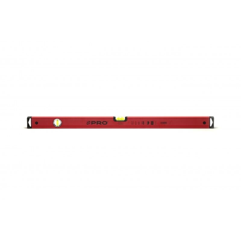 Livello verniciato con indicatori da 150 cm Livello professionale costruito su un profilo rettangolare in lega di alluminio, con maggiore resistenza agli sbalzi di temperatura e umidità. La superficie del profilo è dipinta di rosso. Attualmente una delle livelle più riconoscibili sul mercato polacco. La livella è dotata di un'innovativa livella "EASY READING" con una precisione di misurazione di 0,5 mm/m = 0,029°, che ha sostituito il tradizionale cubo. - a forma di fiala La forma arrotondata della livella a bolla consente di leggere la posizione della bolla, indipendentemente dall'angolo di visione, garantendo così una lettura facile e veloce. Inoltre, si ottiene un effetto lente di ingrandimento, che rende la bolla più grande nella livella a bolla precedente. La nuova livella a bolla e il coperchio stesso sono stati privi di spigoli vivi, il che consente una facile pulizia dell'utensile da qualsiasi sporco.