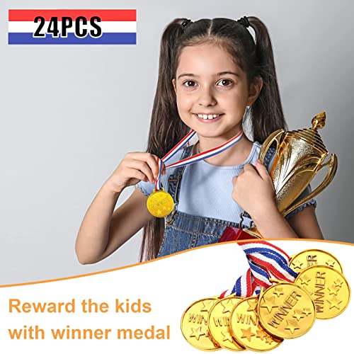 LIVESTN Medaglie,24 Pezzi Bambini Oro Plastica Vincitore,Oro Plastica Winner Medaglie Premio Vincitore per Festa Giocattolo medaglia,per Bambini Festa di Compleanno premi Concorso