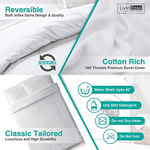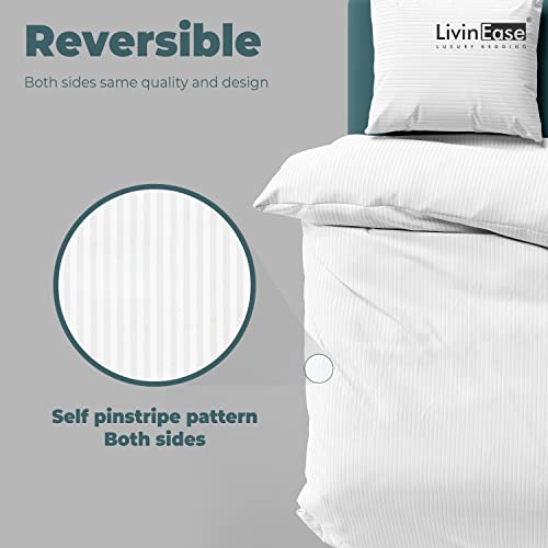 LivinEase Copripiumino da una piazza e mezza - Copripiumino a righe in raso di cotone bianco 200x200 cm + 2 cuscini 50x75 cm - Bianco