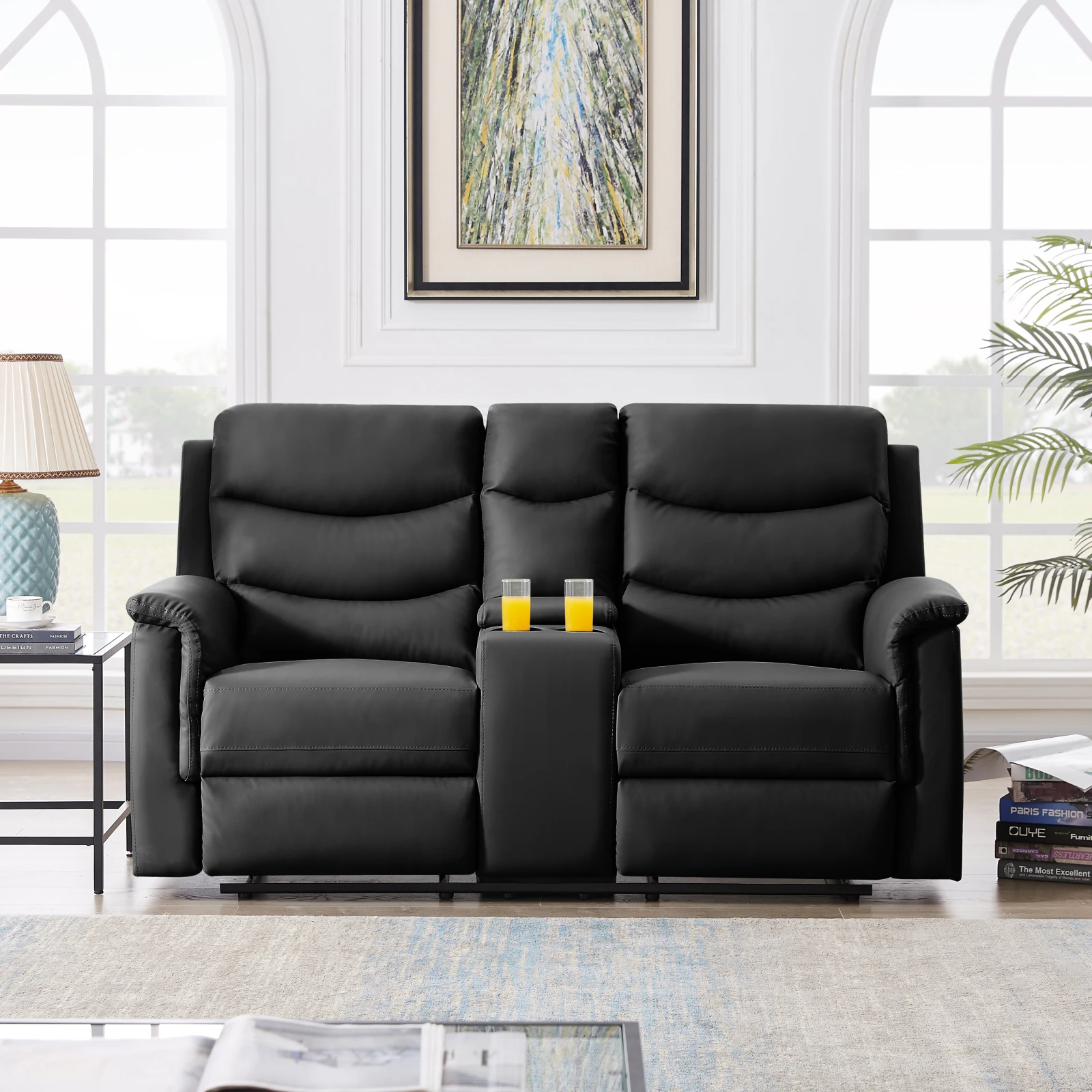 Living Room Sofa Pu Leather Sofa 2-Seater With Console Black Pu Modern House Living Room Funitures Office Sofa With Storage Case