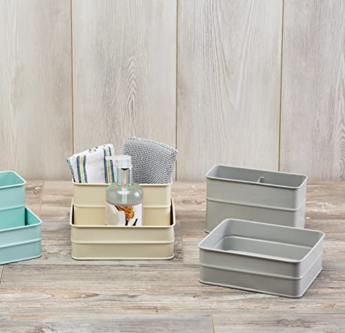 Questo contenitore per lavello in acciaio color crema anticato è ideale per mantenere i lavelli puliti e organizzati e lavare a portata di mano.