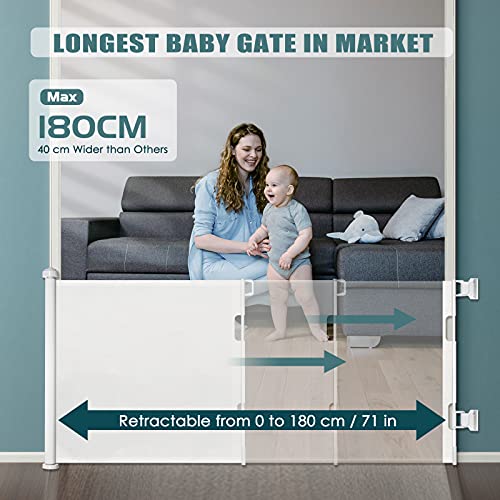 LiviNGPAi - Cancello per scale retrattile, larghezza 180 cm, con una sola mano, per scale, corridoi, cucina, giardino, interni ed esterni (180 cm)