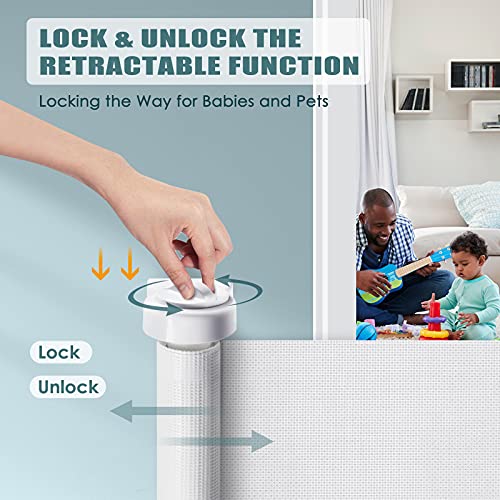Perfetto per neonati e animali domestici: costruito per funzionalità, il cancello retrattile funziona sia come cancello di sicurezza per bambini che come cancello per animali domestici per mantenere il male contenuto fornendo un ambiente sicuro e indipendente per giocare. Per bambini dai 6 ai 24 mesi. Per animali domestici da 10 a 40 libbre.