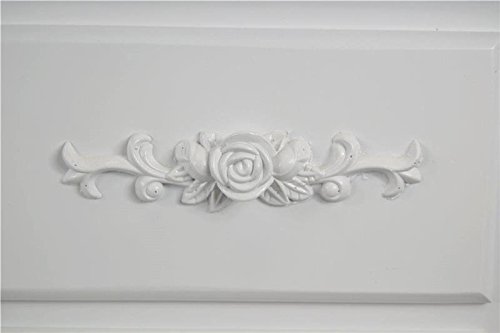Un vero e proprio sogno per bambine. Splendido tavolo da toeletta, bianco, con specchio e sgabello floreale, realizzato prevalentemente a mano, i pomelli dei cassetti sono lavorati come ornamento di rose.