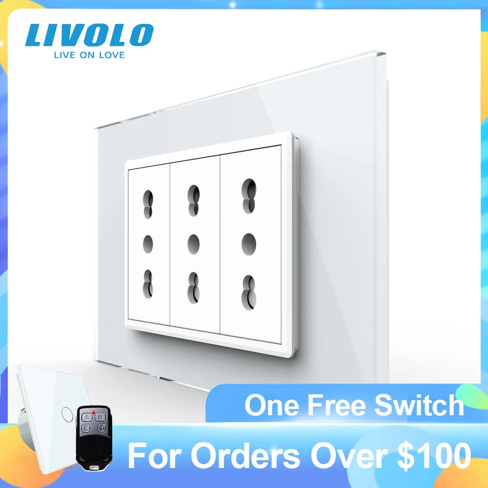 Livolo Italy Standard 3 Pins Socket, White Crystal;