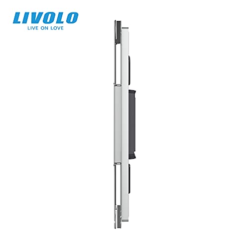Livolo Presa a muro e copertura in vetro per interruttore della luce, pannello in vetro 45x45mm, utilizzato in combinazione con modulo interruttore presa livolo DIY,VL-P9E-2I (grigio)