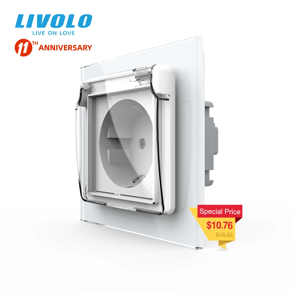 Livolo EU Standard Power Socket, White Glass Panel, AC 110~250V 16A Wall Power Socket with Waterproof Cover C7C1EUWF-11
