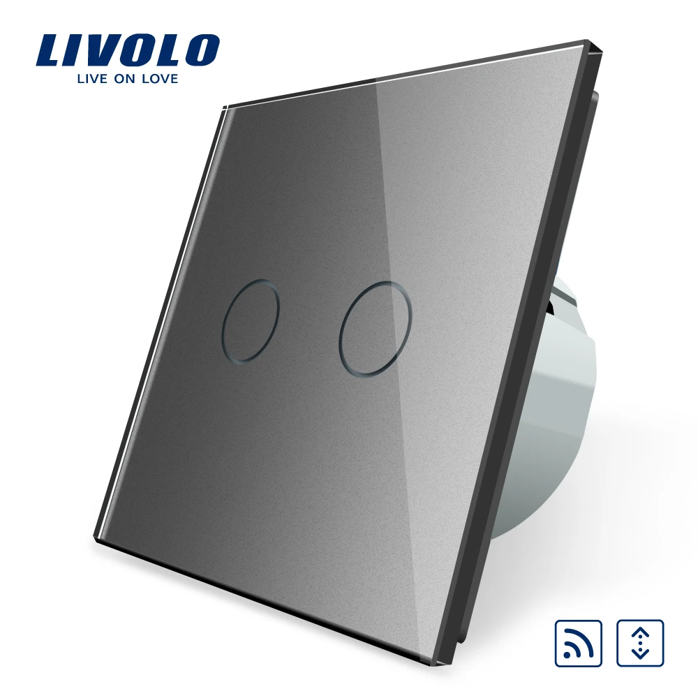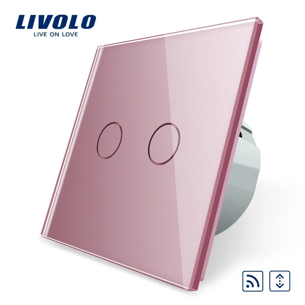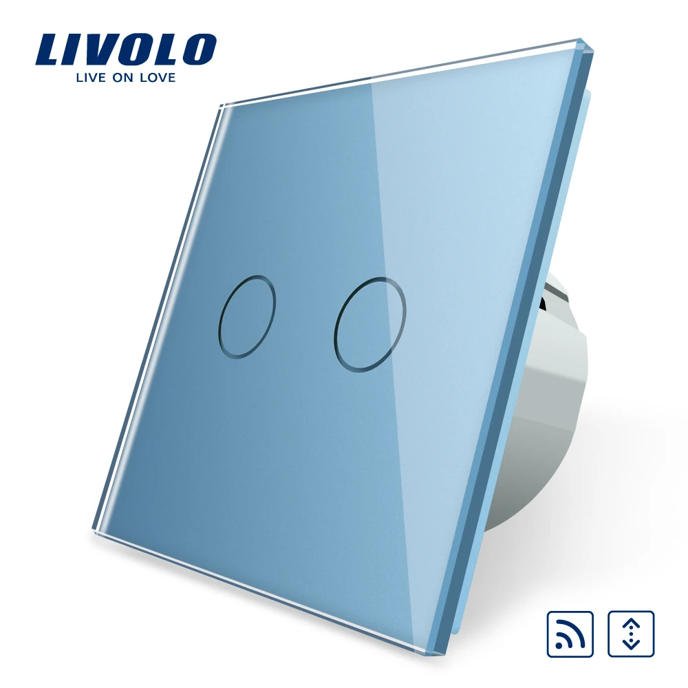 Livolo EU Standard Touch led remote curtains Switch, AC 220~250V,White Crystal Glass Panel, C702WR-1/2/3/5,No remote controller