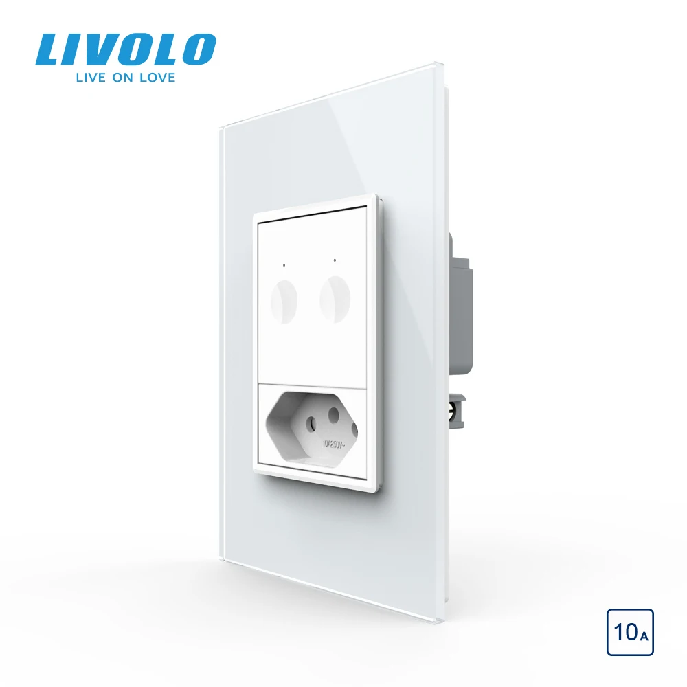 Livolo US AU Standard 67.5mm Wall Touch Switch,2Way Remote Control,white crystal glass,plastic key,push button,with Brazil plug