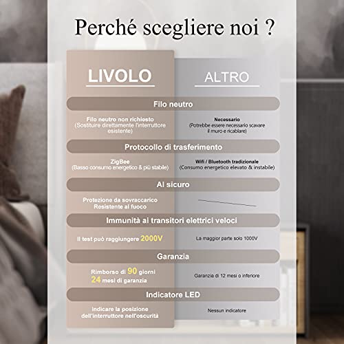LIVOLO:Live on love.{LIVOLO EU} è il nostro unico negozio in Amazon. Produciamo il prodotto e possediamo il marchio. Fornire l'originale buona qualità e l'interruttore di prezzo franco fabbrica. In caso di problemi, non esitate a contattarci, risponderemo alle vostre e-mail entro 24 ore (Tranne il fine settimana).