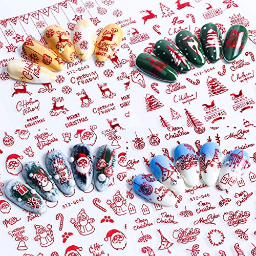 Liwein Adesivi Unghie Natalizie Autoadesivi Adesivi Unghie Decalcomania Trasferimento ad Acqua 3D Nail Art Adesivi Decalcomanie Auto-adesivo Unghie Punti Decorazioni(blu)