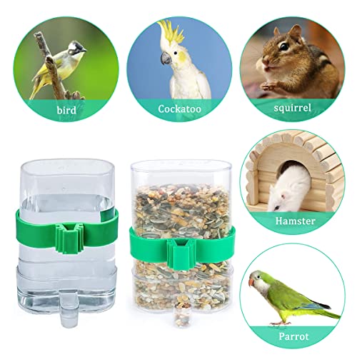 Materiale di qualità: totale di 4 pezzi Alimentatore automatico dell'acqua. Realizzato in materiale PP di alta qualità, sicuro, igienico e durevole. Appenso in una gabbia, può essere utilizzato per contenere cibo o acqua per evitare che il tuo uccello rovescia accidentalmente la ciotola sull'acqua.
